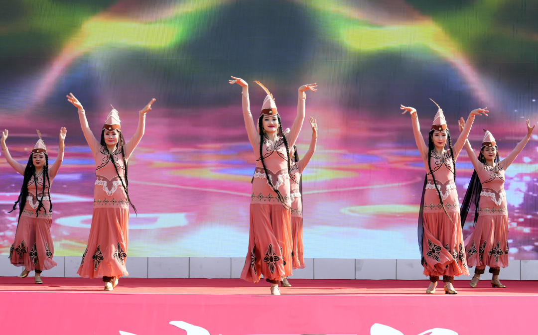 开幕现场,楼兰艺术团带来的集体舞《楼兰赛乃姆》。苏波摄