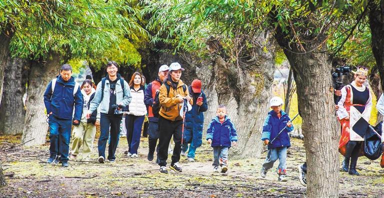 11月1日,游客在林芝市巴宜区雅尼湿地参加“巴宜人的周末”之柳林寻趣踏秋徒步活动。巴宜区持续提升文旅品牌,打造更多特色文旅场景。刘 枫摄(中经视觉)