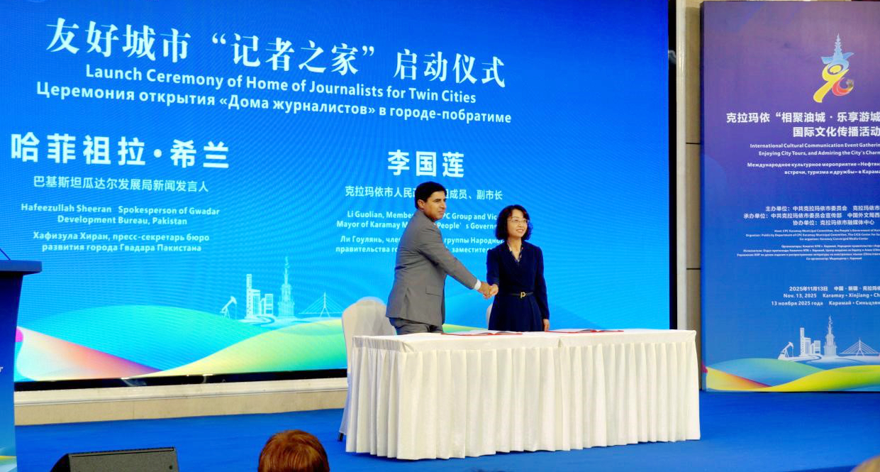 开幕式上,友好城市“记者之家”正式启动。克拉玛依市政府分别与巴基斯坦瓜达尔发展局新闻办公室、俄罗斯联邦伊斯基季姆市政府城市行政管理处签订合作备忘录,克拉玛依市融媒体中心与《今日巴基斯坦》传媒集团签订合作备忘录。