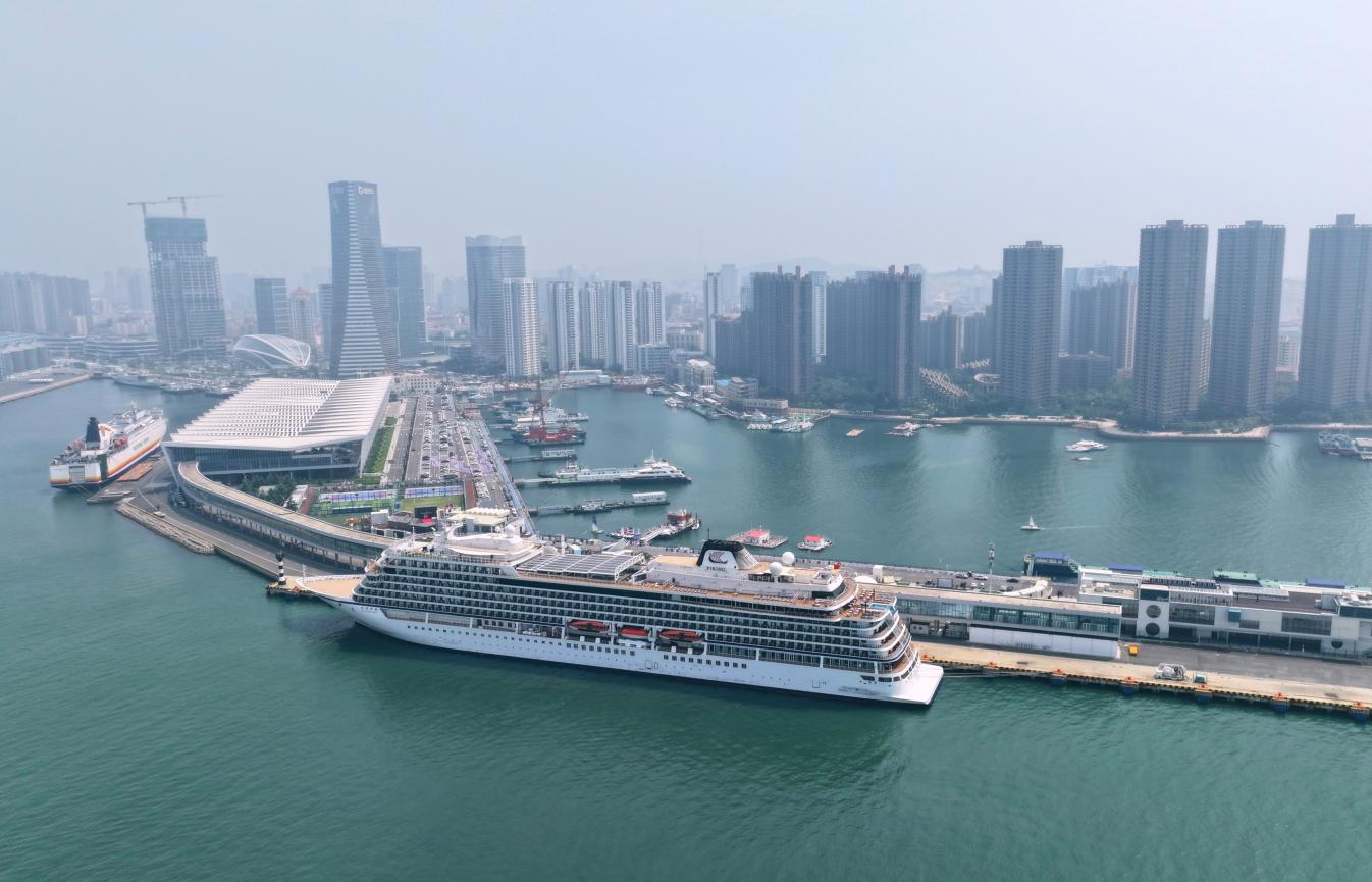 “招商伊敦”号邮轮停靠在青岛邮轮母港