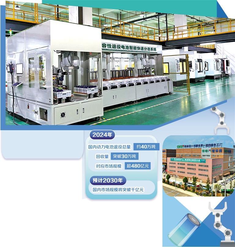 随着新能源汽车产业蓬勃发展,我国已经成为动力电池生产大国和使用大国。根据电池使用寿命推算,我国即将迎来动力电池规模化退役阶段。据统计,2024年,国内动力电池退役总量约40万吨,回收量突破30万吨,对应市场规模超480亿元,预计2030年国内市场规模将突破千亿元。
