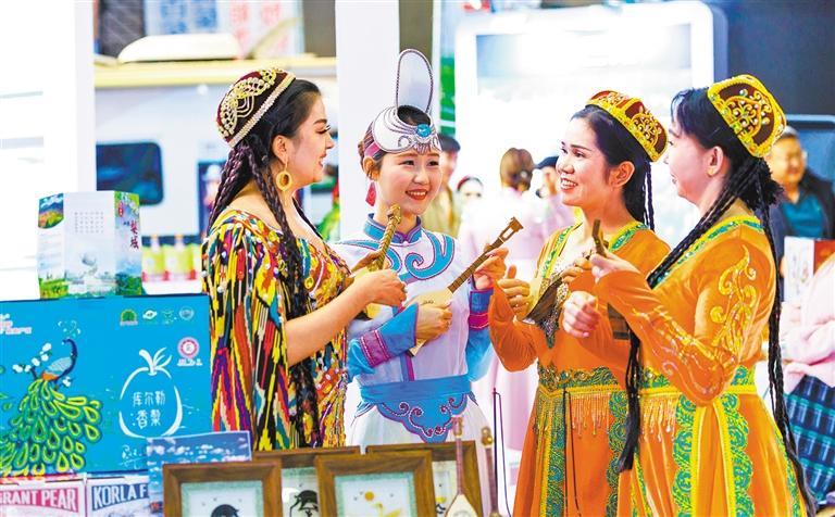 11月15日,演员在新疆国际会展中心举办的第十九届新疆冬季旅游产业交易博览会上演奏乐器。