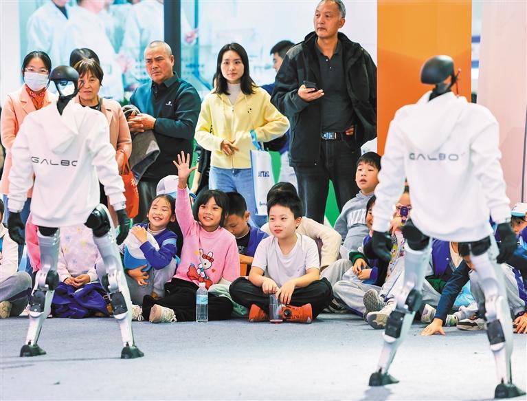 11月13日,在位于四川宜宾市的2025动力电池应用生态展览会现场,学生在观看机器人表演。