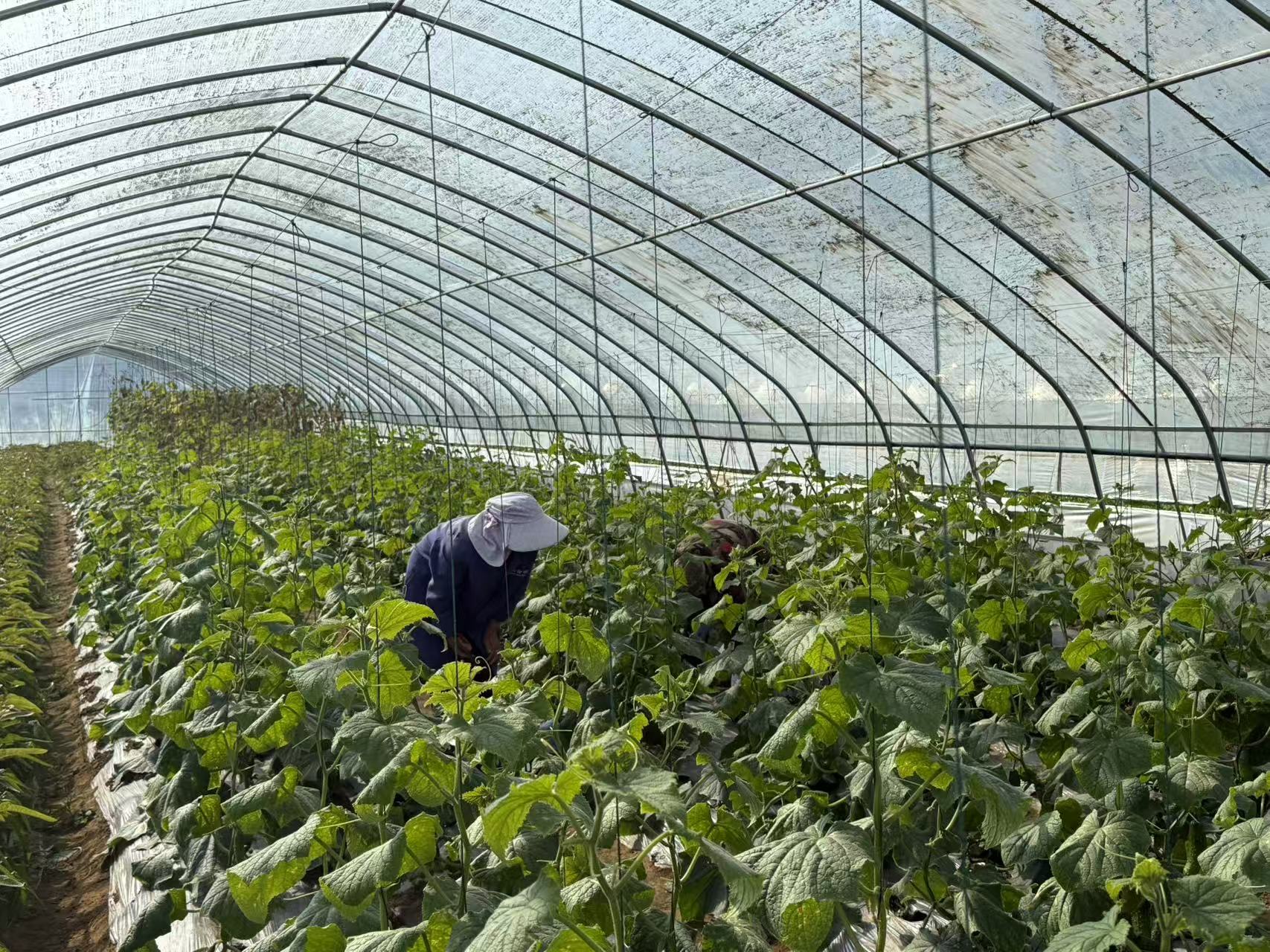 村民正在大棚里采摘黄瓜。洪兰唐娜摄