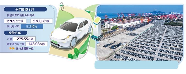 奇瑞汽车累计出口突破500万辆,江汽集团百万元级新能源汽车品牌尊界S800上市4个月大定破1.5万辆,蔚来开启乐道、萤火虫多品牌战略协同模式……今年前10个月,安徽汽车产量达275.55万辆、新能源汽车产量达143.03万辆,继续保持全国第一位,距年度产量首次全国登顶越来越近。目前,安徽集聚了奇瑞集团、蔚来汽车、大众安徽、合肥比亚迪、江汽集团、合肥长安、汉马科技7家整车企业,以及覆盖“三电”“三智”等全链条的规上零部件企业3000余家。安徽成为汽车制造第一大省固然与统计口径的调整有关,更深层的原因则在于安徽抢抓新能源汽车产业风口,坚定布局、持续深耕。